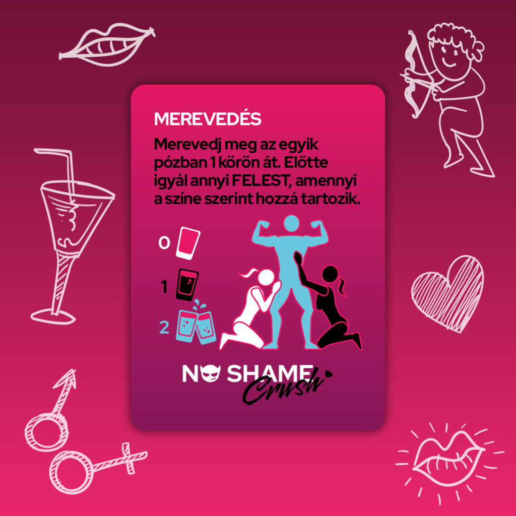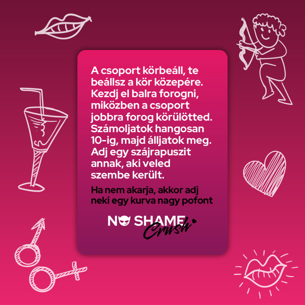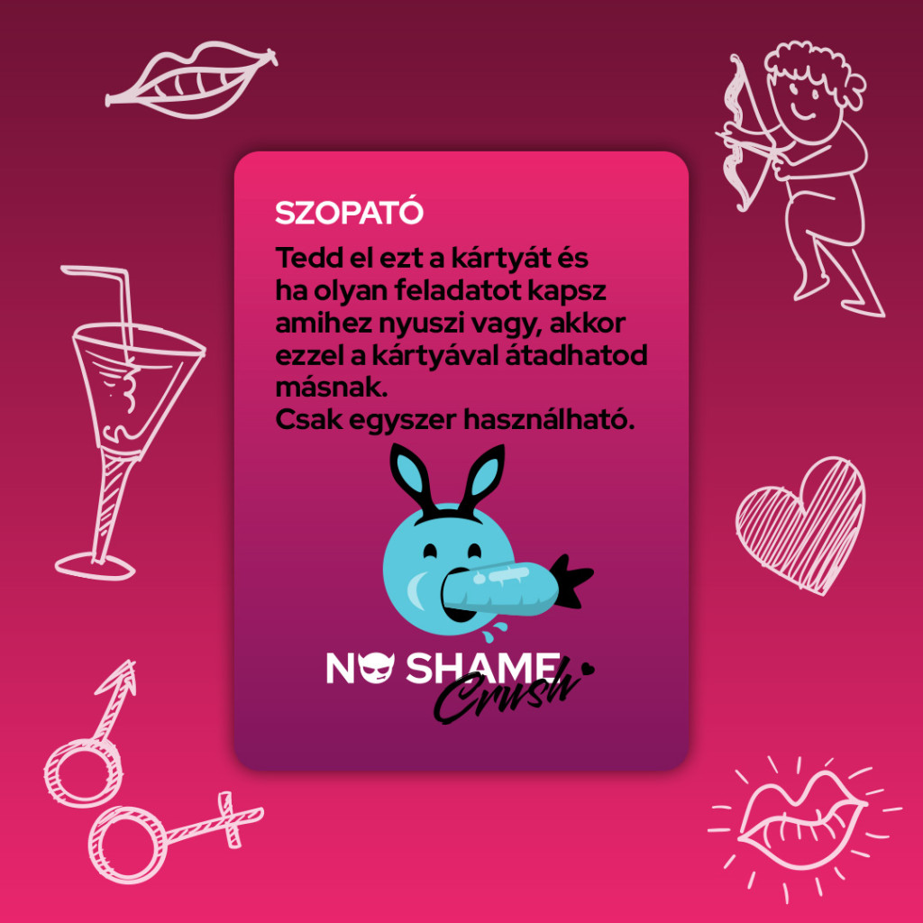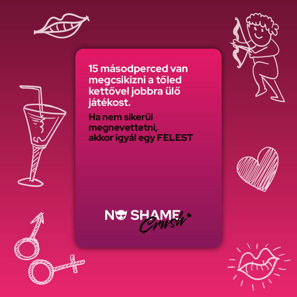 A No Shame Crush ivósjátékot az olyan bulikra találtuk ki, ahol többségében egyedüllállók lesznek. 60 vadonatúj, minden eddiginél betegebb bulikártya. Ez a játék garantáltan befűti a hangulatot. Játszátok végig és garantálom, hogy ezen az estén senki sem fog egyedül ágyba kerülni. Ezen a No Shame házibulin még azok is össze fognak jönni, akik eddig azt sem tudták, hogy bejönnek egymásnak. A Crush-t magában is tudod játszani, de össze is keverheted a többi No Shame ivósjátékkal.
