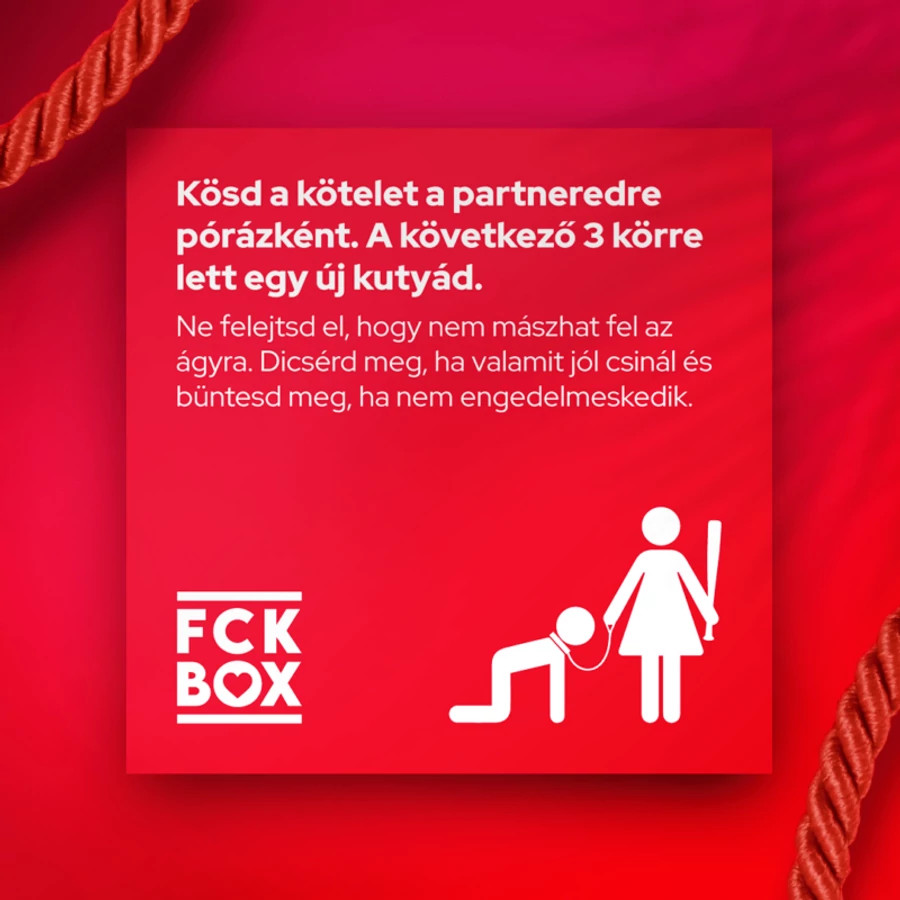 2. FCK-Box – Ahol a tabuk megszűnnek Ha már elég közel kerültetek egymáshoz, jöhet a nehéztüzérség. Az FCK-Box egy kifejezetten pároknak készült erotikus kártyajáték, ami nem finomkodik. Merész feladatok, érzéki kihívások és olyan hálószobai kalandok várnak rátok, amiket eddig talán csak titokban mertetek elképzelni. Ez a játék segít felfedezni egymás testét és vágyait egy teljesen új, izgalmas módon.